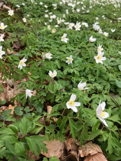 Jeg vil afslutte med at sende dig et lille smil fra mit nye hjem i Sorø. Her triller jeg rundt i skoven – i det gudesmukke anemone landskab, med min søn sovende i klapvogn.