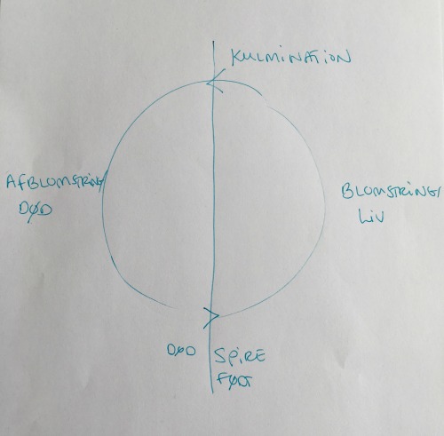 Illustrationen herunder viser, hvordan blomsters energi livscyklus i min erfaring fungerer: